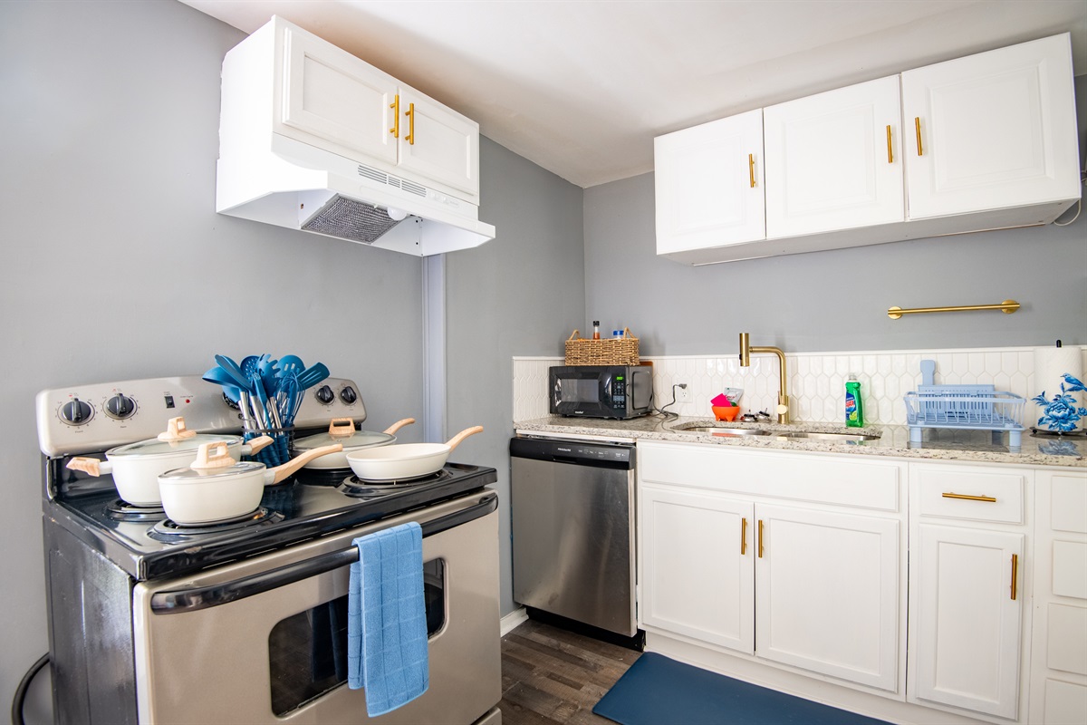 Whether you’re whipping up a quick breakfast or preparing dinner, the kitchen has everything you need—modern appliances, cookware, utensils, and plenty of counter space to make cooking a breeze. Complimentary coffee is included to start your mornings right.