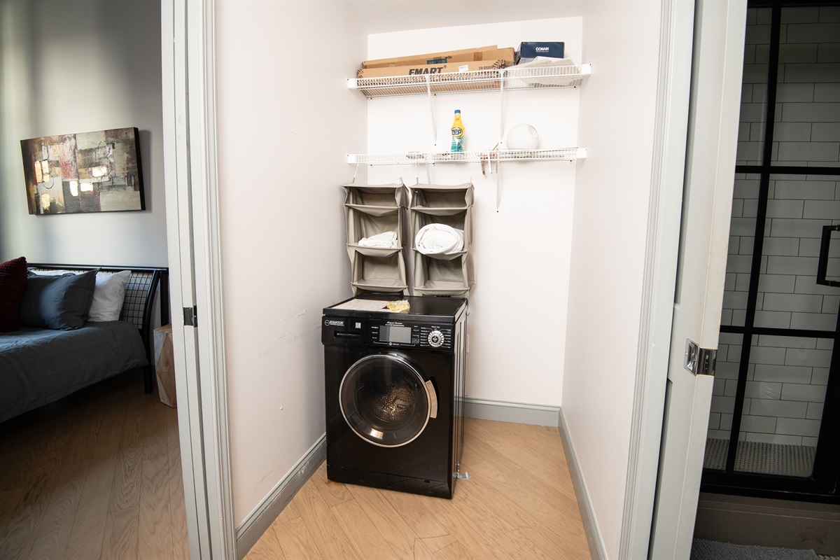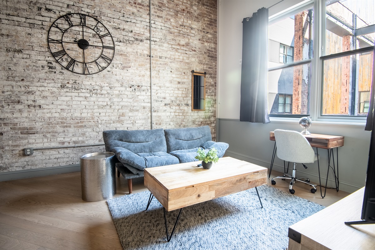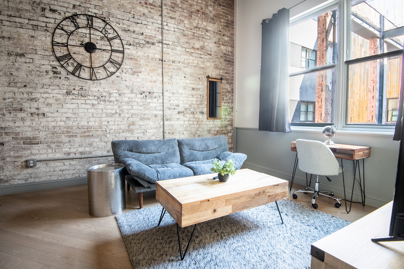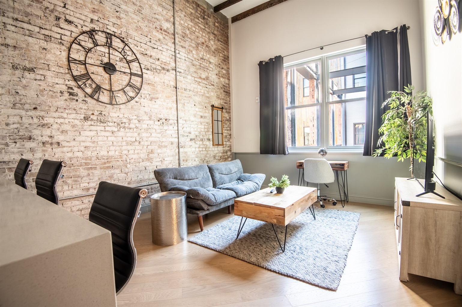 The space is designed with your comfort in mind. It has lovely natural light in the highly accommodating living area and a capable work desk with a delightful chair for your business on the go. Its incredibly modern and entirely updated renovations provide all you’ll need to relax and create your home away from home. A large luxurious shower is available for you to freshen up with eco friendly hotel sized toiletries for you to enjoy so you don’t have to bring yours. When you're done for the day chill out under the BIG ASS FAN (actual brand name) in the bedroom on a high quality mattress and enjoy your favorite shows and/or sports on the Roku TV. When you wake up in the morning let that first sip of coffee we have provided warm your soul and if you so choose make some breakfast in the fully equipped kitchen.