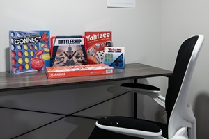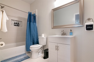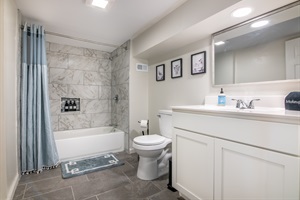 Cook, snack, and connect in the stylish kitchen, featuring stainless appliances, stone countertops, and subway-tile accents — meal prep feels easy and enjoyable here! After exploring the city, everyone will LOVE hanging out in the huge basement lounge with its massive sectional and 70" smart TV — perfect for movie marathons, game nights, and laughter that lasts past midnight! Did we mention there's also a game room complete with an air hockey table and a dartboard?