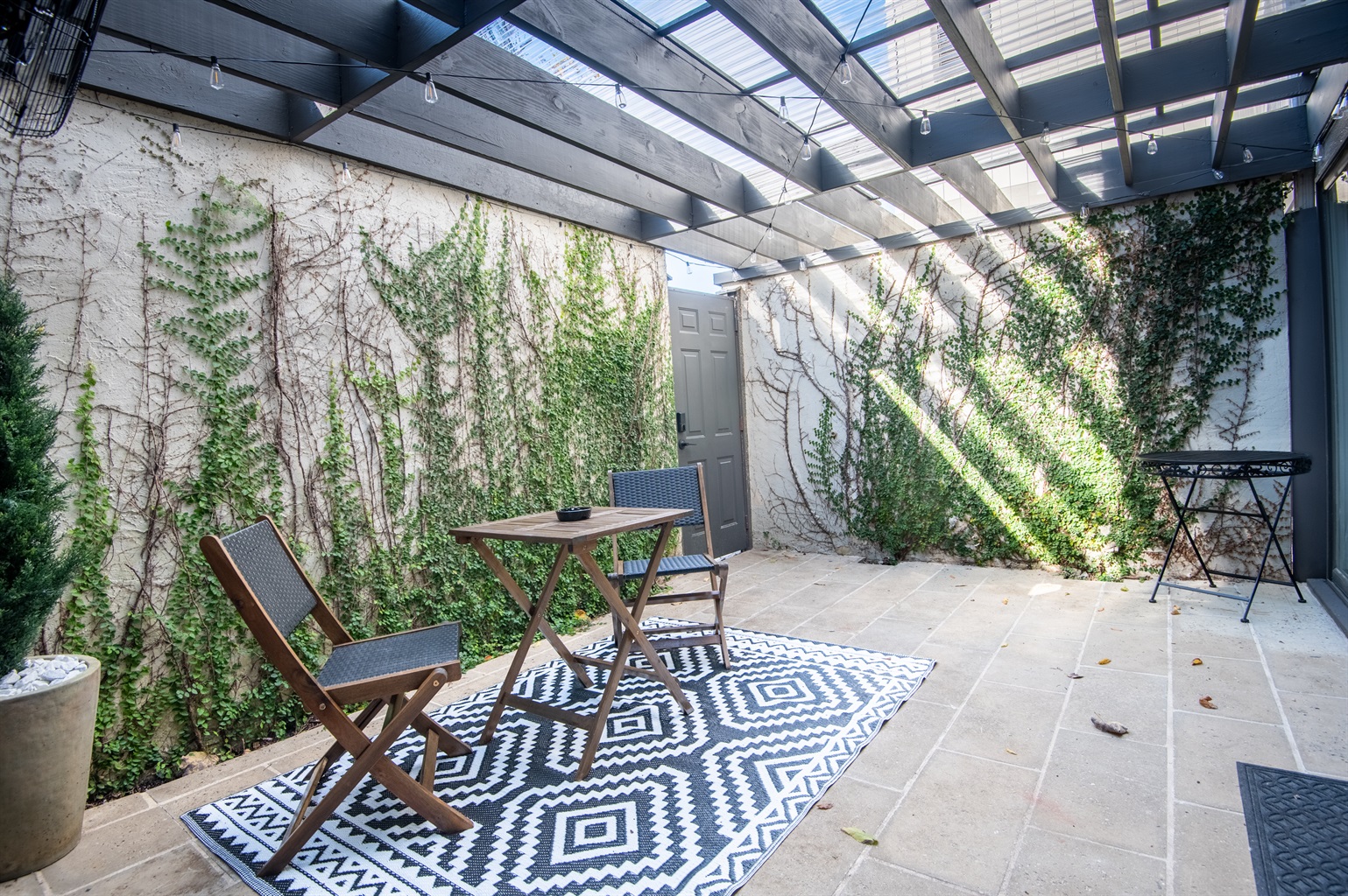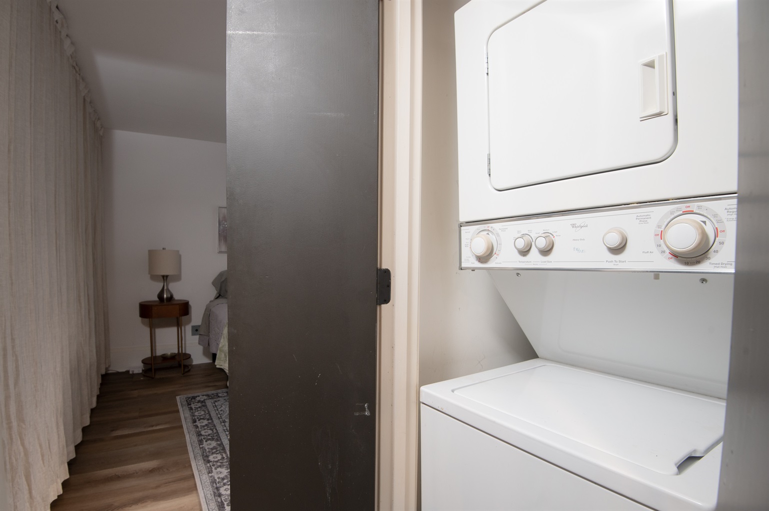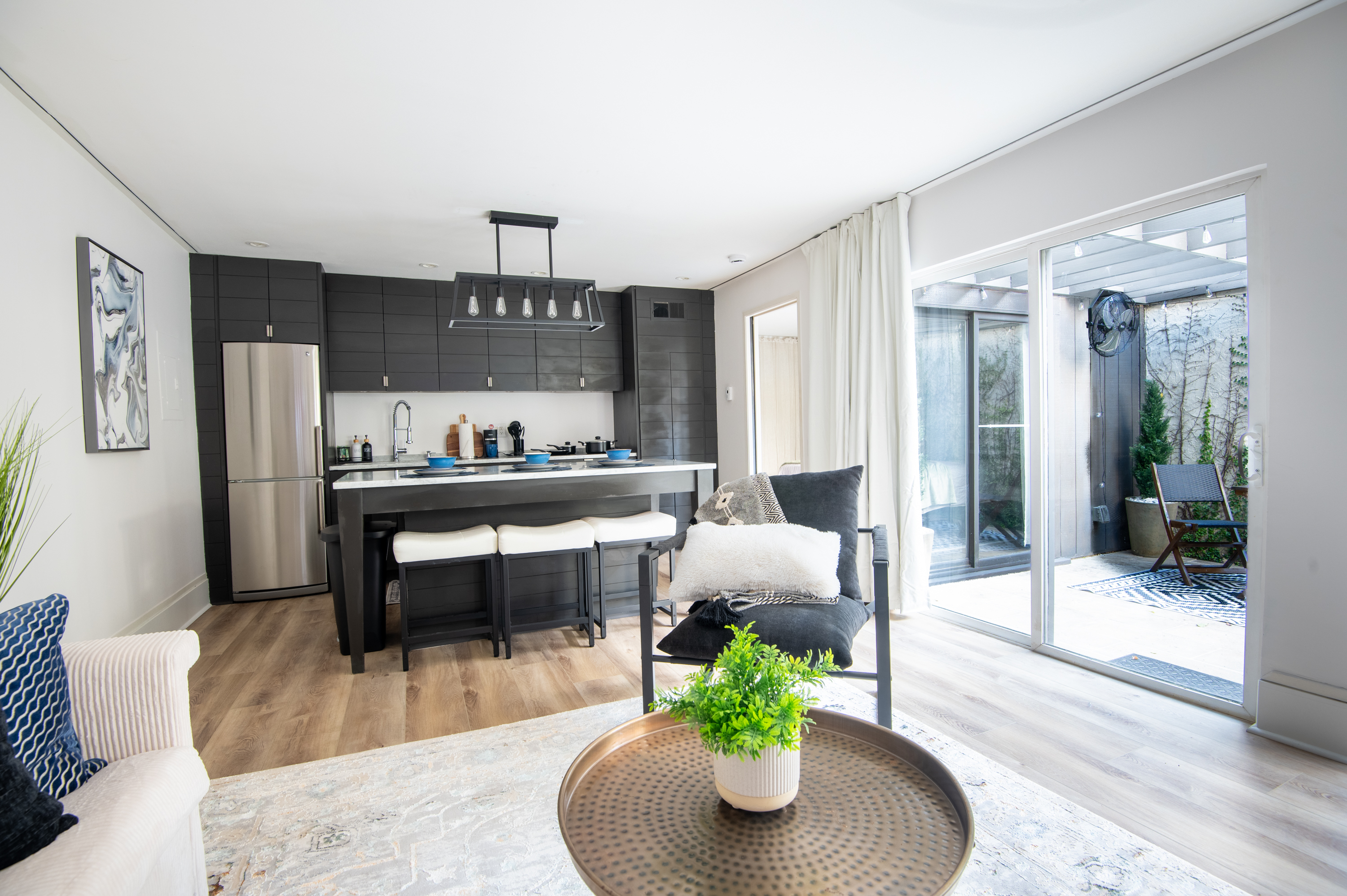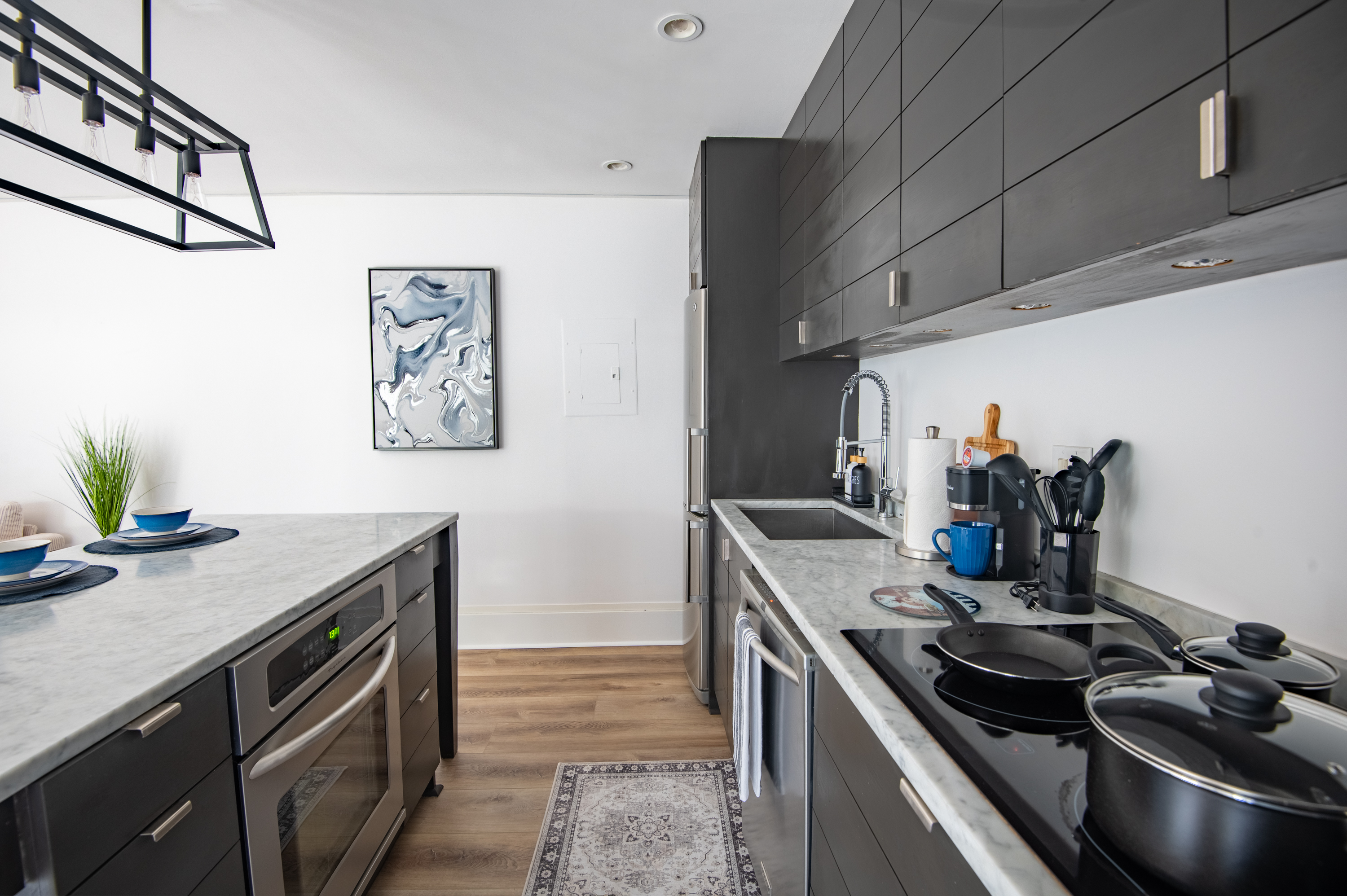 1 Bedroom • 1 Bathroom 1 Bath • Sleeps 1-3Whip up meals in the fully equipped kitchen featuring stainless steel appliances, sleek countertops, and all essentials. Relax in the open living area with a smart TV, or step onto your private balcony for city views and fresh air. The spacious bedroom boasts a plush king bed, blackout curtains, and a ceiling fan for restful sleep, plus ample closet space.