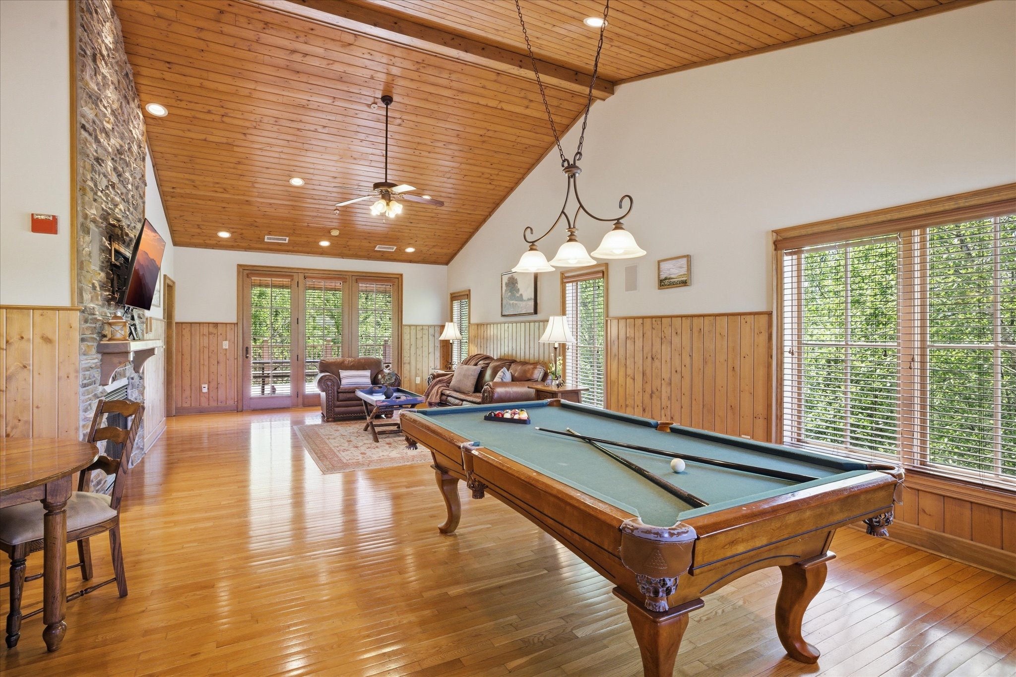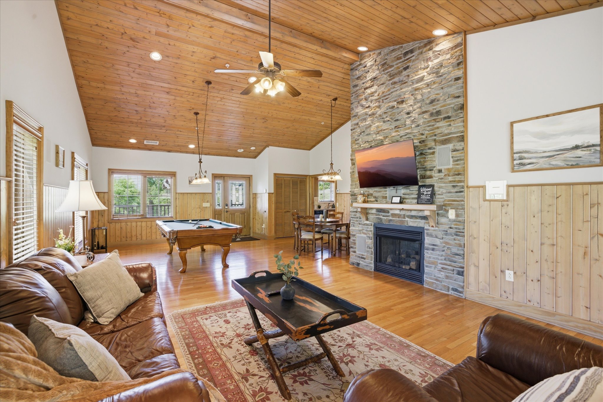 What truly sets this stay apart is access to the Serenity Ridge Resort clubhouse. Guests can enjoy a seasonal outdoor pool with elevated mountain views, multiple lounge areas, and a game space featuring pool, ping pong, air hockey, and more. Outdoor areas and gathering spaces make it easy to spend time outside and take in the setting.