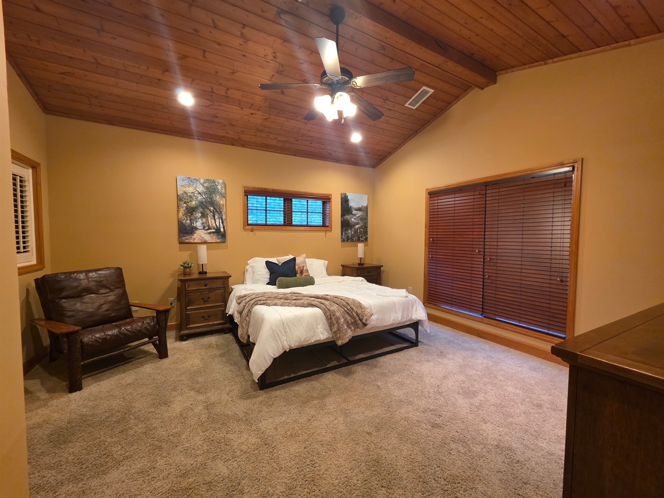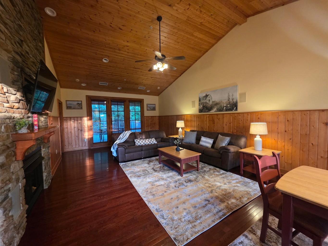 Inside, you’ll find a warm, inviting space with natural wood accents, soft textures, and a layout designed for comfort. The living area provides a cozy place to unwind after a day out, whether you’re watching a movie, enjoying a quiet evening in, or simply slowing down and recharging.