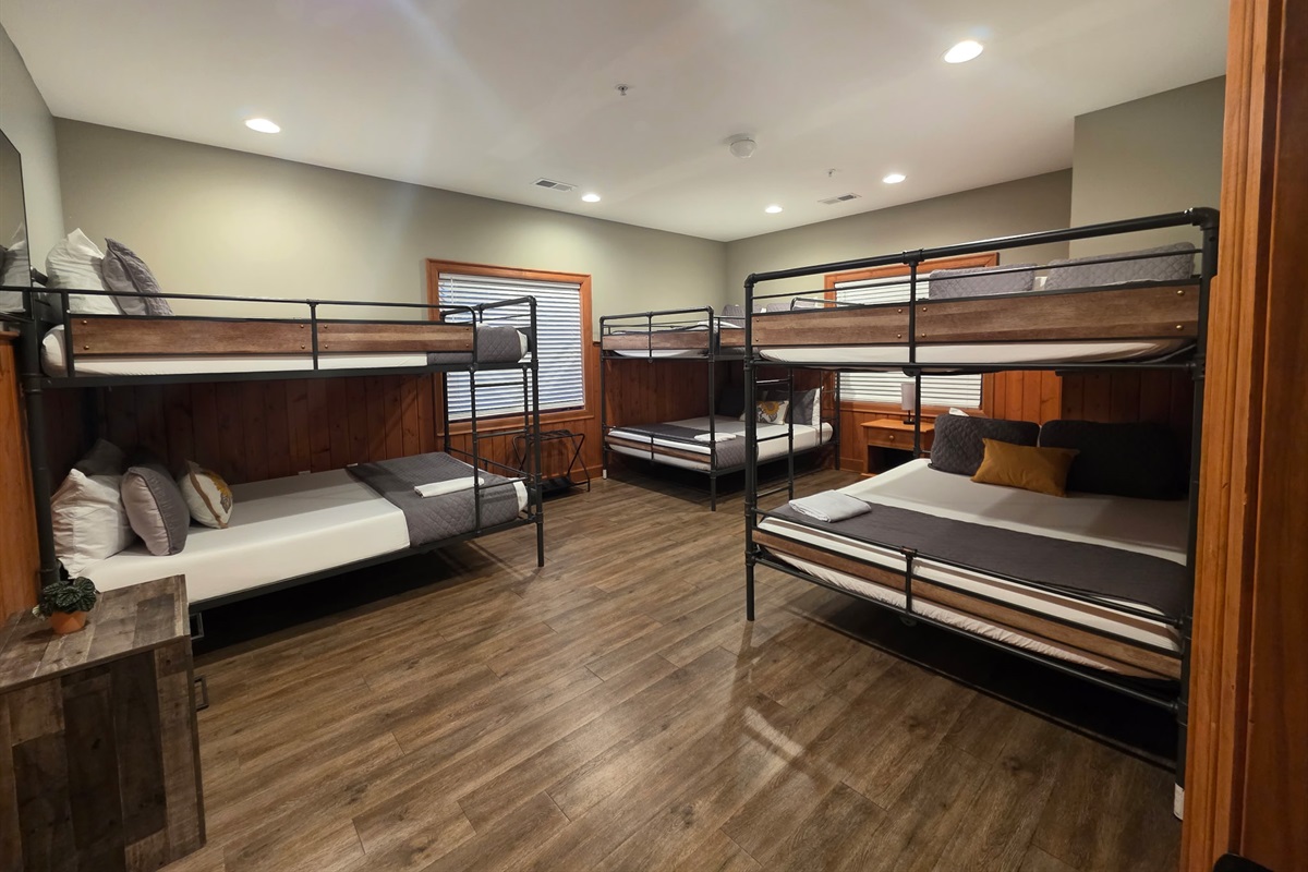 The sleeping arrangements are designed with flexibility and comfort in mind. Multiple private king bedrooms offer quiet, restful retreats, while the oversized bunk room creates a fun and functional space for kids or additional guests—allowing your group to stay together without sacrificing space or privacy.