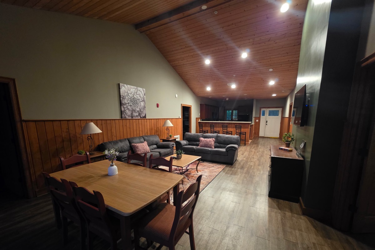 Step inside Unit 711 and you’re immediately welcomed into a wide, open-concept living space that invites everyone to come together. The full kitchen offers ample room for cooking and serving, while the large dining area makes group meals easy and enjoyable. Just beyond, the living room provides generous seating—perfect for movie nights, conversations, or simply unwinding after a full day.