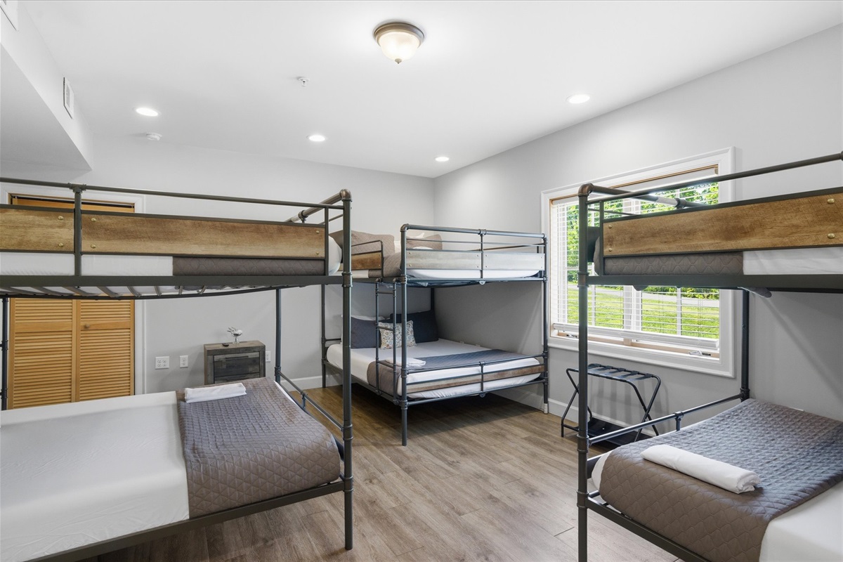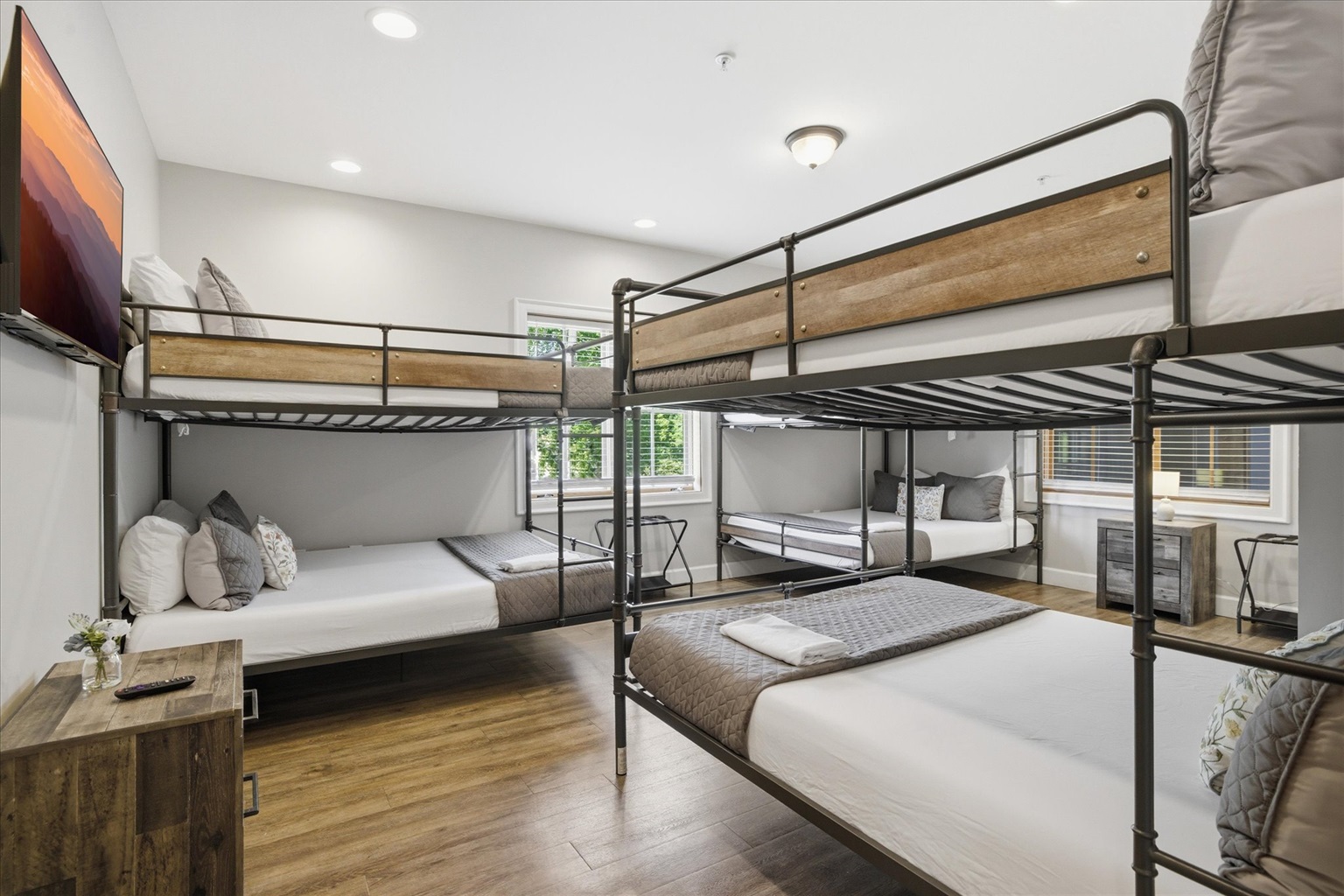 The sleeping arrangements are designed with flexibility and comfort in mind. Multiple private king bedrooms offer quiet, restful retreats, while the oversized bunk room creates a fun and functional space for kids or additional guests—allowing your group to stay together without sacrificing space or privacy.