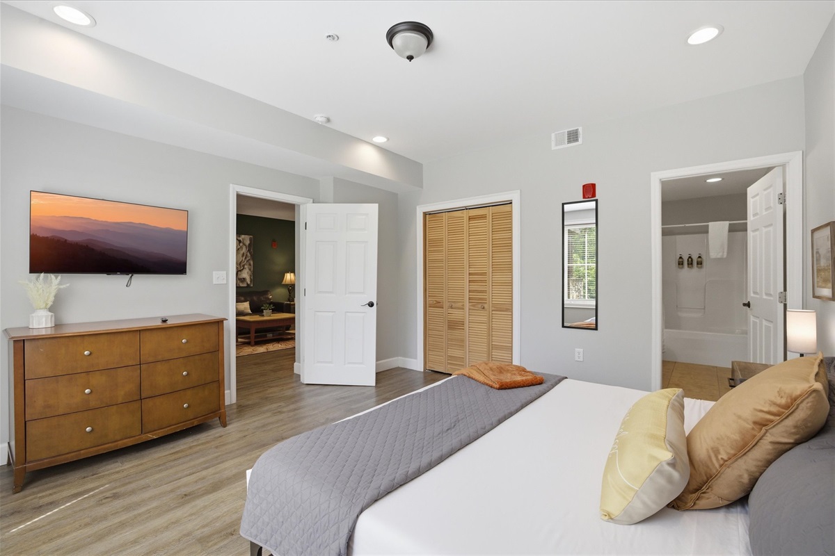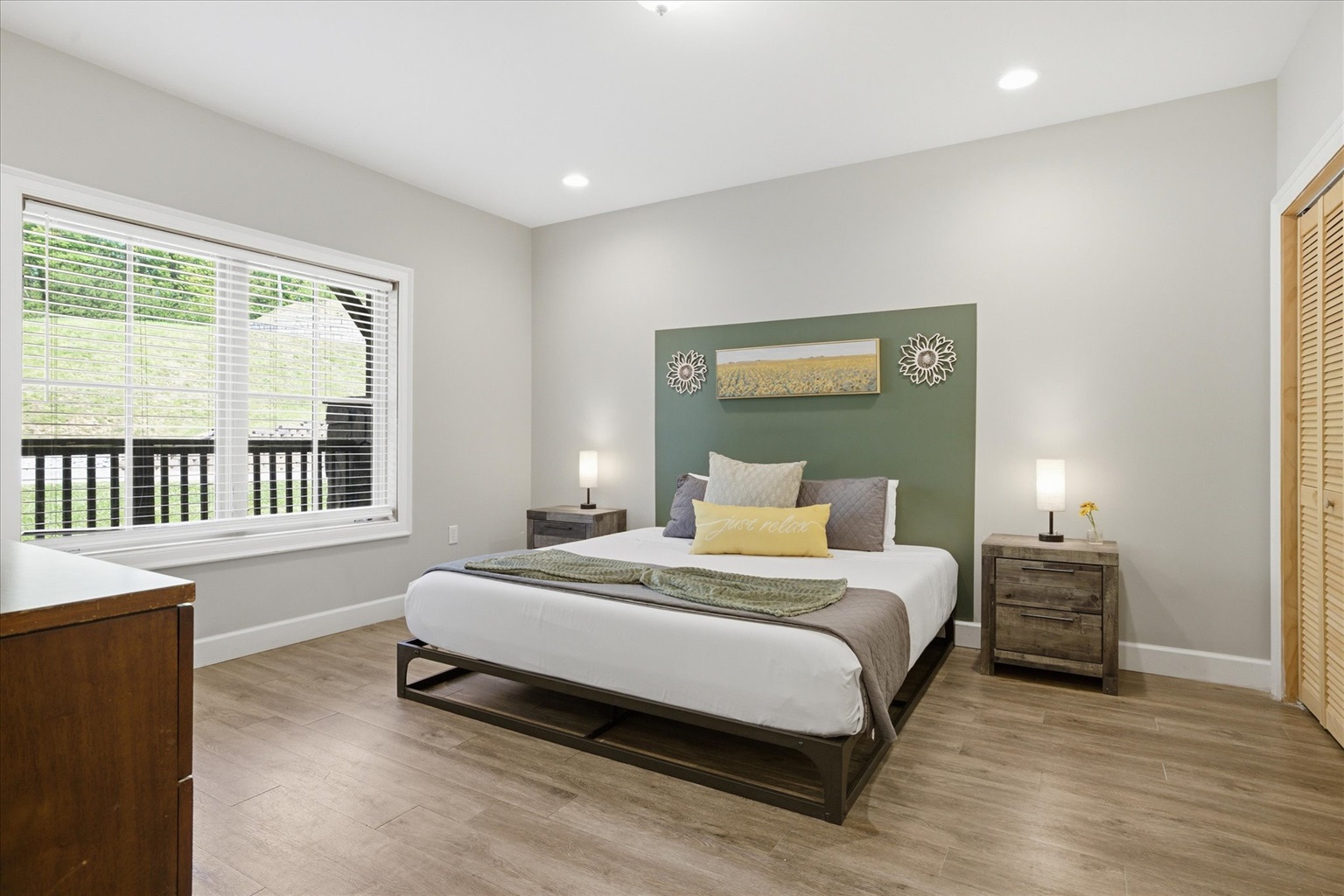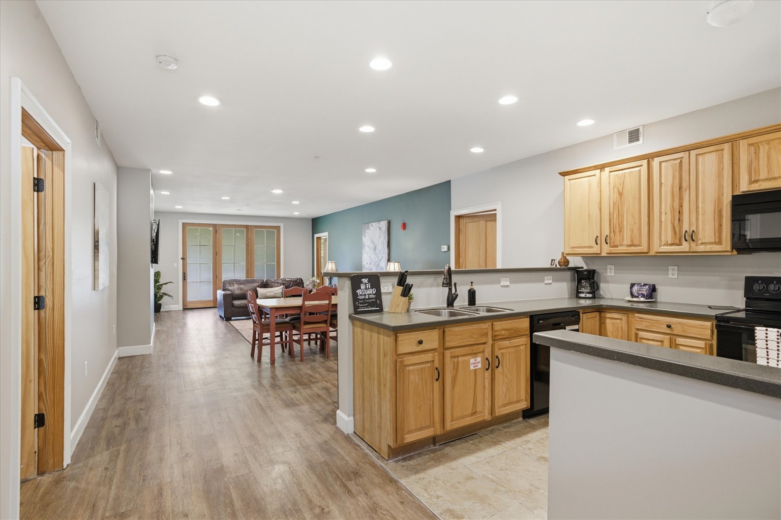 What truly sets Unit 712 apart is its first-floor, wheelchair-accessible layout. With two designated handicap parking spaces located on the side of the building, plus step-free entry into the unit, accessibility and convenience are built right into the experience. (A secondary lower parking area is also available, though it does require stairs.) Inside, the open layout allows for easy movement throughout the main living areas and bedrooms.