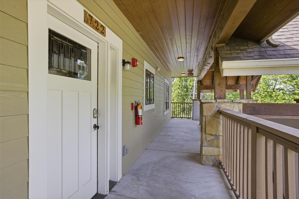 As a second-floor unit, 722 is accessed via one of the two exterior staircases located on either side of the building. While this unit is not wheelchair accessible, it offers a slightly elevated perspective and added privacy once inside.