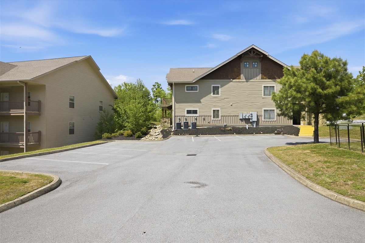 Parking is available along the side of the building as well as in a lower parking area. Guests can choose the most convenient option, keeping in mind that stair access is required to reach the second floor.